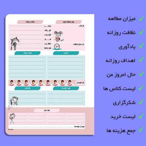 Mr. Rad's Housekeeping Planner همه عاشقان لوازم تحریر، دفتر ، کتاب و همه کسانی که بنا به موقعیت تحصیل یا شغلشان با دفتر و نوشت افزار زیاد سرو کار دارند، برای خرید دفتر برنامه ریزی به خصوصیات آن توجه و پس از بررسی کامل خرید میکنند. خصوصیاتی مثل کیفیت کاغذ، جنس و دوام و طراحی جلد، طراحی صفحات، نوع صحافی ، تعداد صفحات، قطع و اندازه دفتر و… در انتخاب دفتر تأثیر گذار است. دفترچه برنامه ریزی خانه داری مسترراد 75 برگ بوده که یکی از دفترهای محبوب بازار است و برای استفاده بعنوان دفتر برنامه ریزی برای استفاده همه سنین، به ویژه بانوان انتخاب مناسبی است. دفتر برنامه ریزی خانه داری مستر راد شامل بخش هایی مانند اهداف روزانه، حال روز، شکر گزاری، لیست خرید، جمع هزینه ها، لیست کلاس ها، میزان مطالعه، یادآوری و نظافت روزانه و… میباشد. مزیت رقابتی پلنر مستر راد نسبت به سایر دفترها، علاوه بر وزن بالای کاغذ و کیفیت جلد که محافظ خوبی برای کاغذها است ، فنری بودن صحافی آن است. سیمیبودن دفتر در عین اینکه به شما امکان میدهد در صورت نیاز برگهای را از آن جدا کنید و به خوبی برگه ها را در کنار هم قرار میدهد. نام های دیگر دفتر برنامه ریزی پلنر، پلنر تحصیلی، دفتر برنامه ریزی روزانه و … می باشد