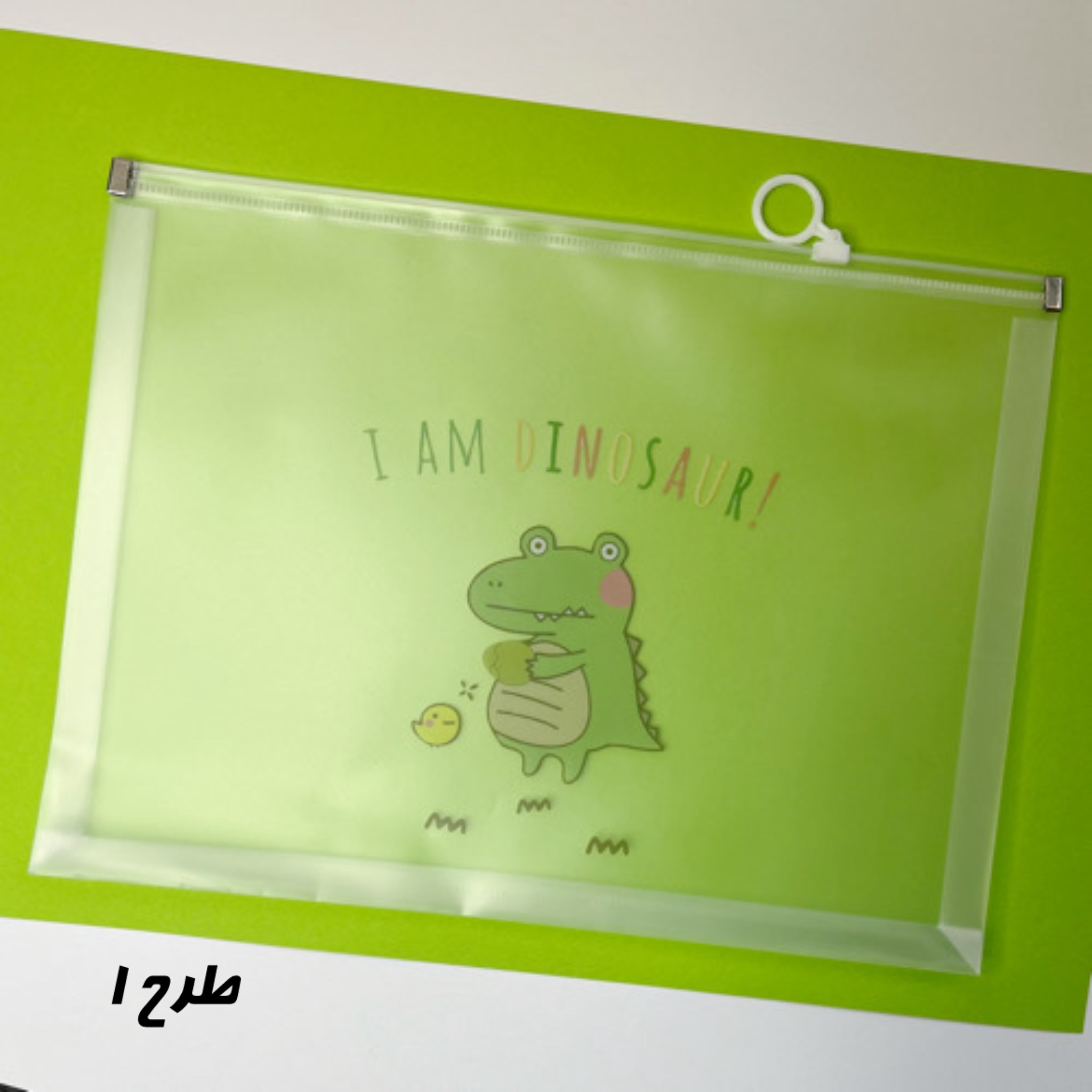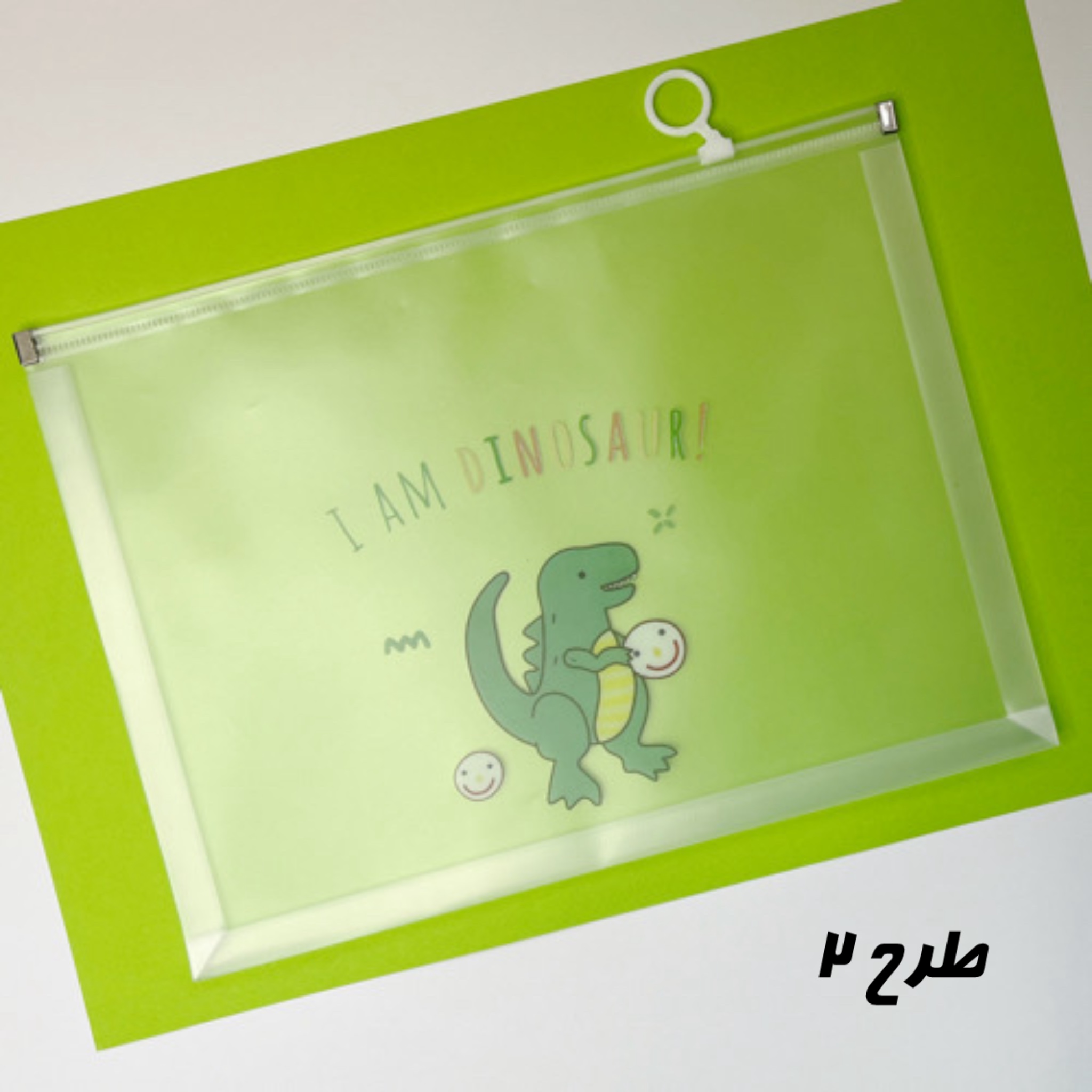 خانه - پوشه و کلر بوک - کاور کاغذ و مدارک زیپ دار شفاف سايز A4 ضد آب طرح دایناسور
